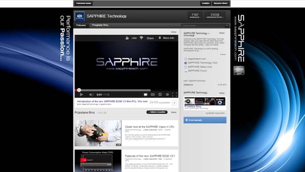 In July 2012, SAPPHIRE Technology, a producer of graphics cards and mainboards, commissioned Sarota PR with launching and running the brand’s new YouTube channel.