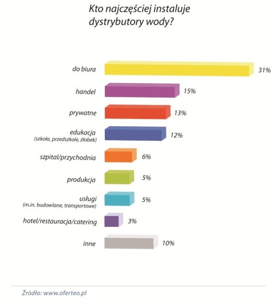 Do tej pory spotykane były przede wszystkim w przychodniach, urzędach czy biurach. Zwykle kojarzyły się z wymiennymi butlami, choć istnieją również modele filtrujące wodę pochodzącą z instalacji wodnej. Dystrybutory wody, bo o nich mowa, coraz częściej pojawiają się również w prywatnych domach i mieszkaniach. Jak pokazuje analiza zapytań ofertowych składanych w serwisie Oferteo.pl, chce je tam zainstalować co ósma osoba poszukująca dostawcy dystrybutorów.